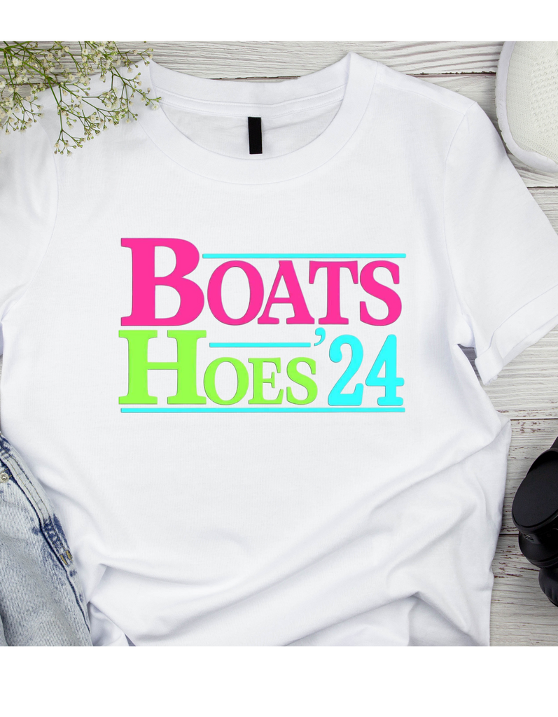 Go all in with Boats and Hoes 2024! Made from 100% airlume combed and ringspun cotton, this t-shirt will keep you comfortable while you navigate through your next adventure. With unisex sizing and a retail fit, it's perfect for any risk-taker. Plus, it's pre-shrunk for worry-free washing.