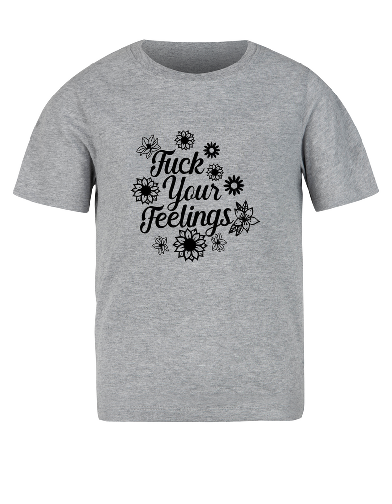 Express yourself with our edgy "Fuck Your Feelings" t-shirt. Made with 100% airlume combed and ringspun cotton for ultimate softness and comfort. Features a trendy retail fit and pre-shrunk material for a perfect fit. Unisex sizing and shoulder taping make it a versatile option for anyone.