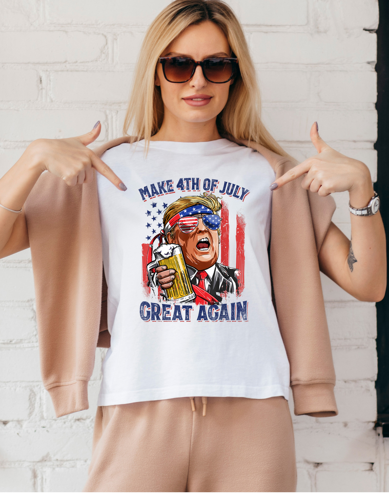 Unleash your daring side with the Make the 4th Great Again t-shirt. Crafted with 4.2 oz airlume combed cotton, this shirt offers both comfort and durability. The shoulder taping and side-seam design provide a flattering fit for any body type. Perfect for everyday wear, this shirt is pre-shrunk and features a bold retail fit.