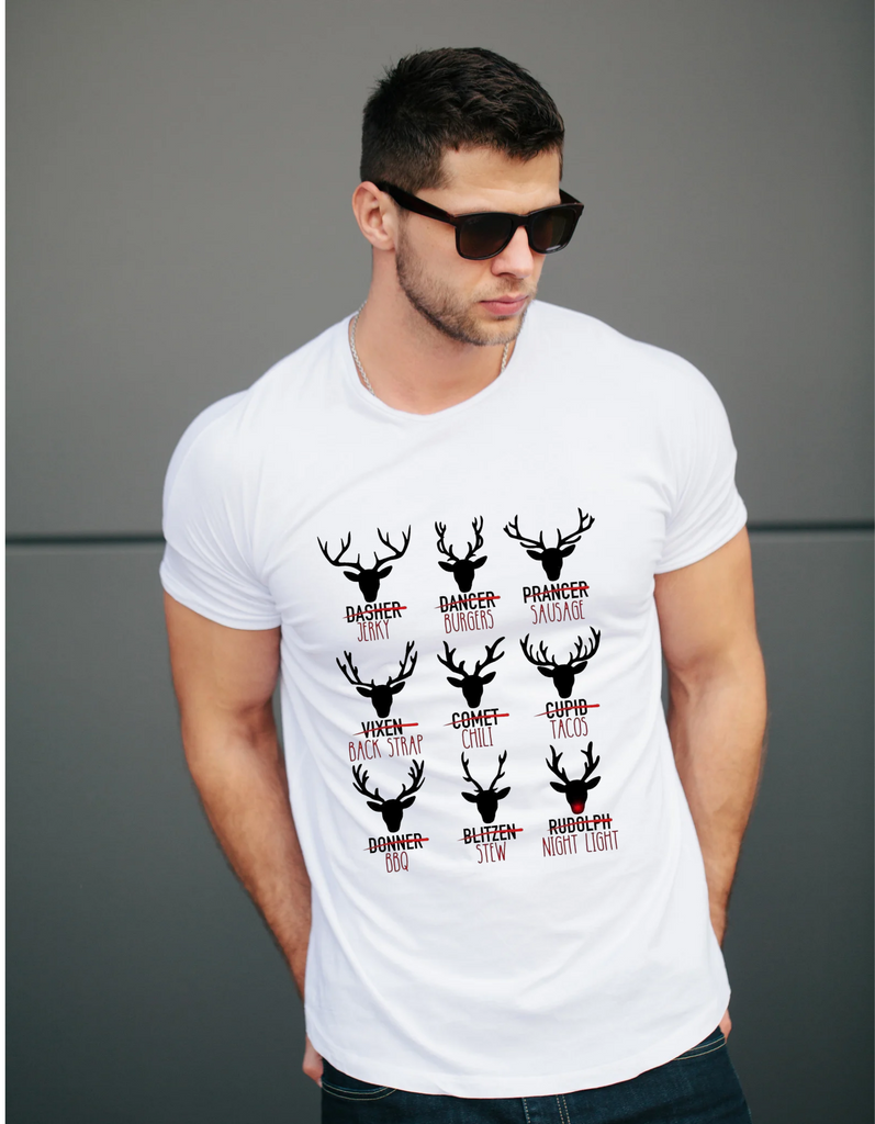 This Reindeer shirt is perfect for hunting season! Made with 4.2 oz. of 100% airlume combed and ringspun cotton, this shirt is both soft and durable. The shoulder taping and side-seamed construction provide a comfortable fit for both men and women. Plus, the pre-shrunk fabric ensures your shirt will stay true to size, even after multiple washes. Get ready to take on your next hunting adventure in style with this unisex shirt.